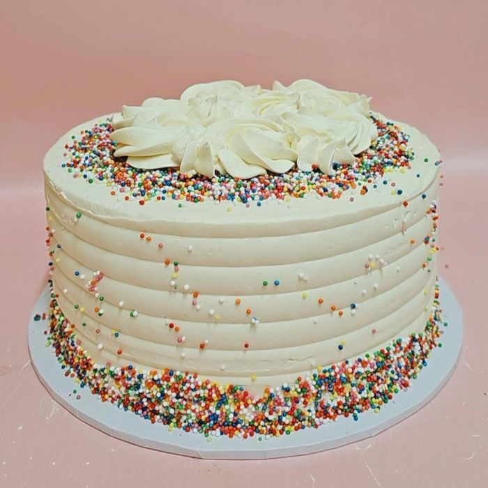 Each cake has 3 layers of cake with a layer of buttercream in between. The buttercream layer between the cake layers will complement your chosen cake.