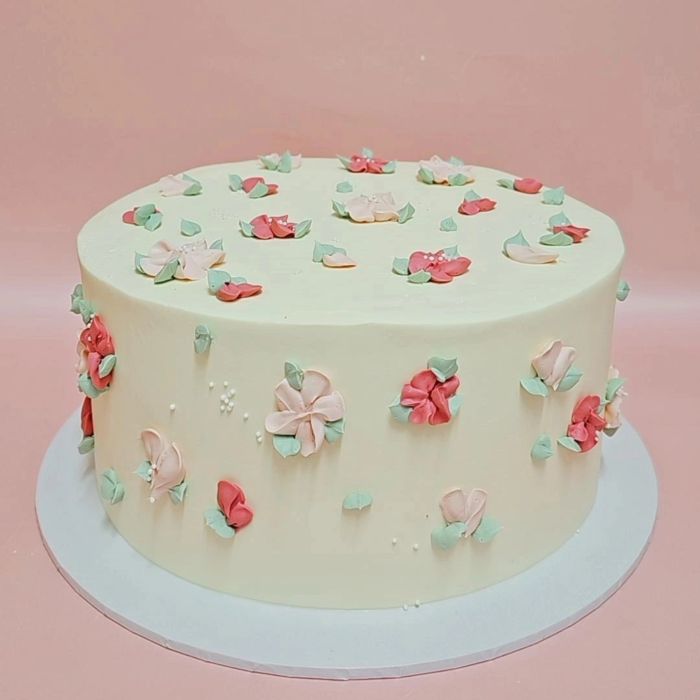 A stunning cake for many occasions! Bloom is a floral cake decorated with hand-piped roses and finished with some fresh dried rose petals.