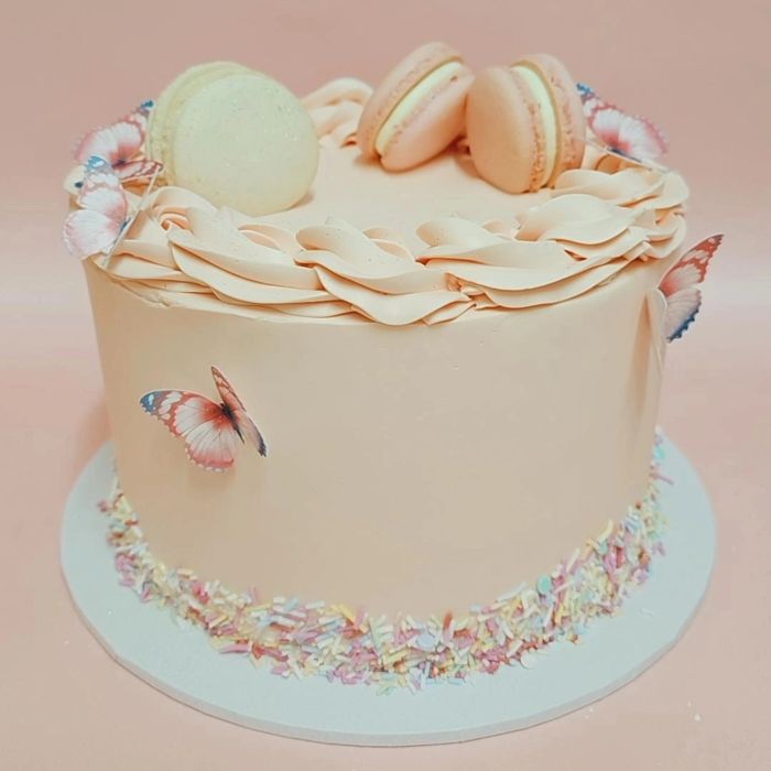 A stunning cake for many occasions! Fairy garden is a beautiful cake decorated with macarons & butterflies and finished with some pastelle sprinkles.