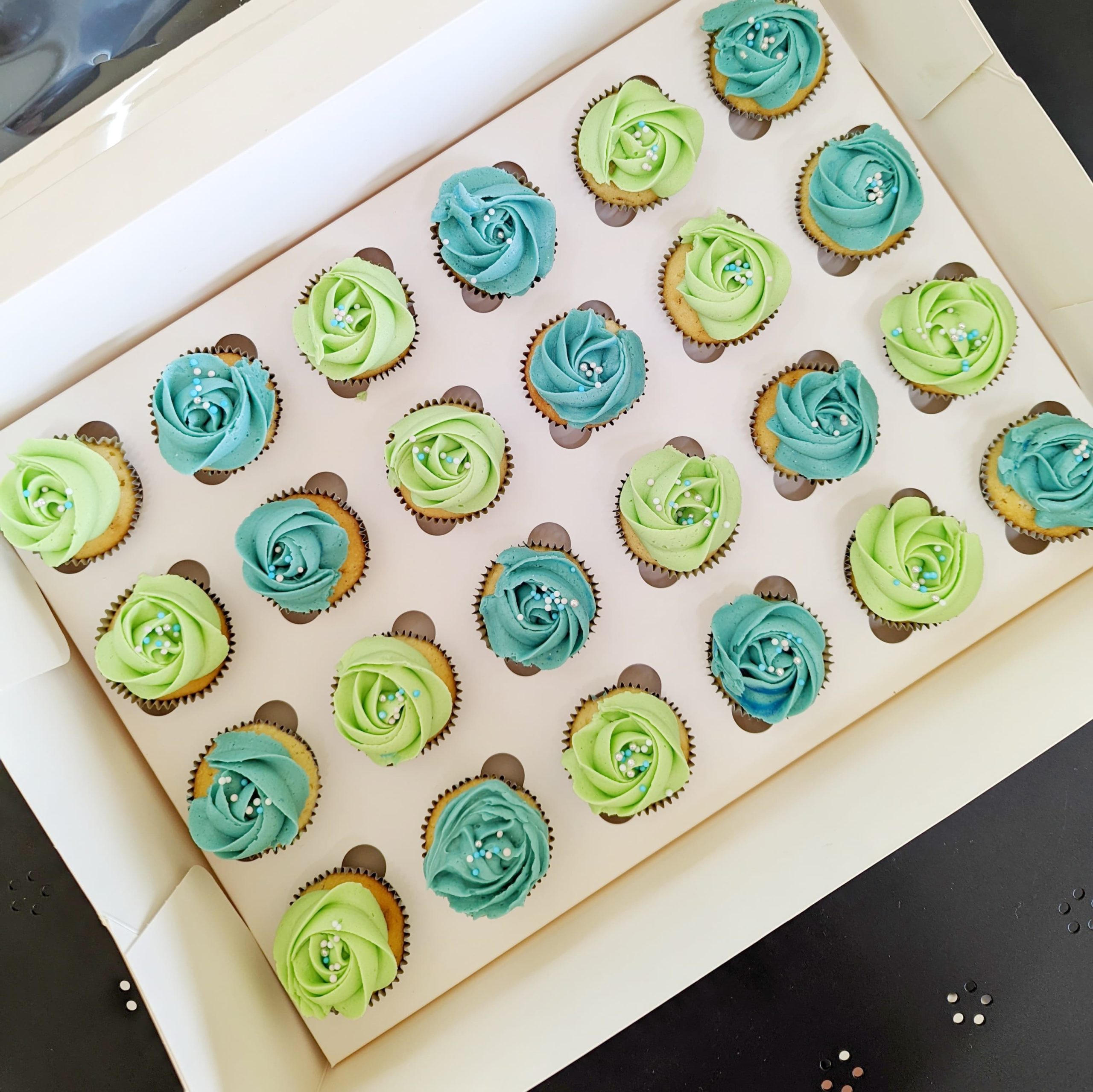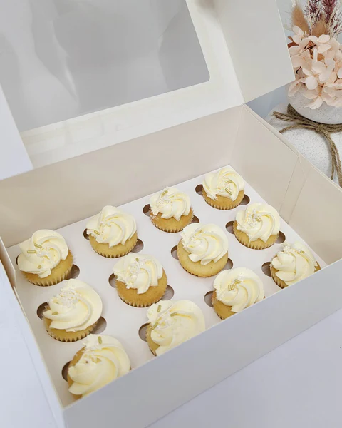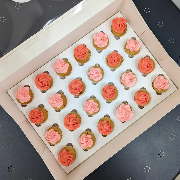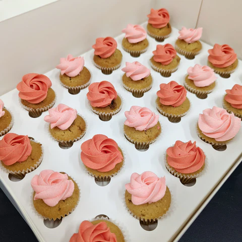 Order a beautiful assortment of mini cupcakes, with our classic vanilla buttercream in the most gorgeous colours to make a perfect addition to your special occasion.