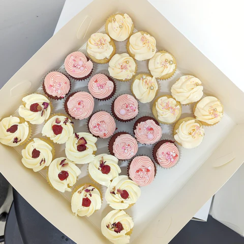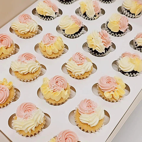 Order a beautiful assortment of our mini glam cupcakes, with our classic Italian meringue vanilla buttercream in the most gorgeous colours to make a perfect addition to your special occasion.