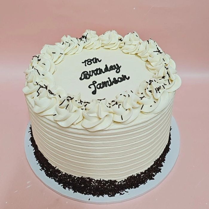 Each cake has 3 layers of cake with a layer of buttercream in between. The buttercream layer between the cake layers will complement your chosen cake.