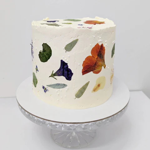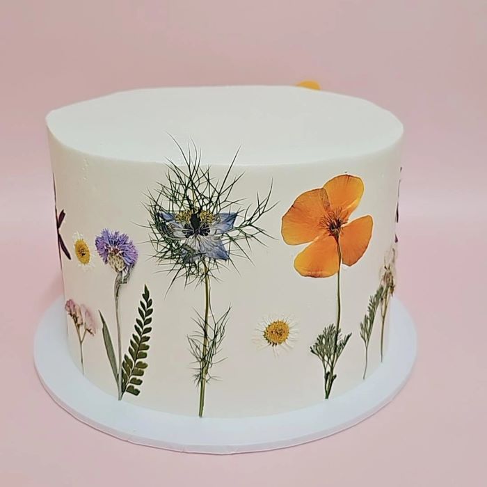 A stunning cake for any occasion! Wildflower is a floral cake decorated with hand-pressed flowers and finished with white sprinkles.